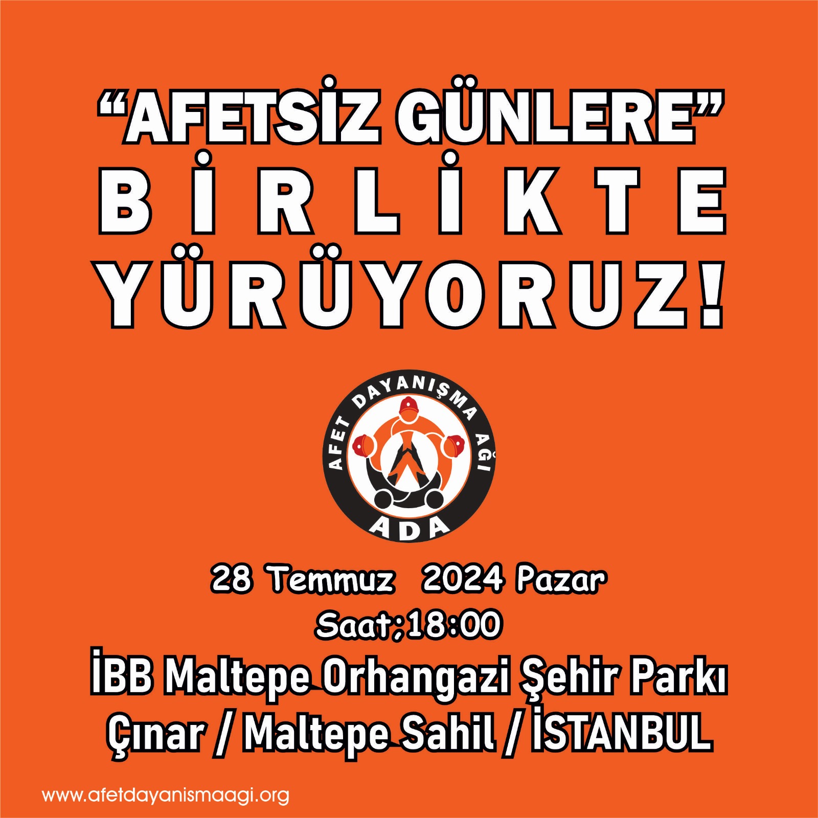 Etkinlik ve Organizasyon Birimimiz tarafından İstanbul IBB Maltepe Şehir Parkı’nda 28 Temmuz 2024 Pazar günü saat 18.00’da Afetsiz Günlere Birlikte Yürüyoruz temalı bir etkinlik organize edilmiştir.