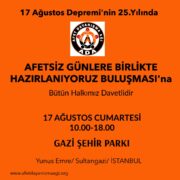 DUYURU Değerli İstanbullu dostlarımız ,17 Ağustos Marmara Depremi Anma etkinlikleri kapsamında 17 Ağustos Cumartesi günü Gazi Mahallesi’nde bulunan GAZİ ŞEHİR
