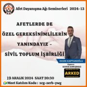 DAVETLİSİNİZ! Afetler, meydana geldikleri bölgedeki tüm bireyleri olumsuz etkilese de özel gereksinimli bireylerin âfetlere karşı daha savunmasız olduğu bilinmektedir.Bir afet